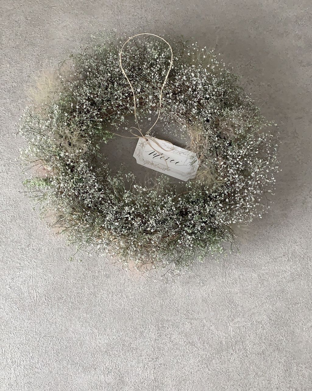 こちはらかすみ草ドライフラワーのリース。